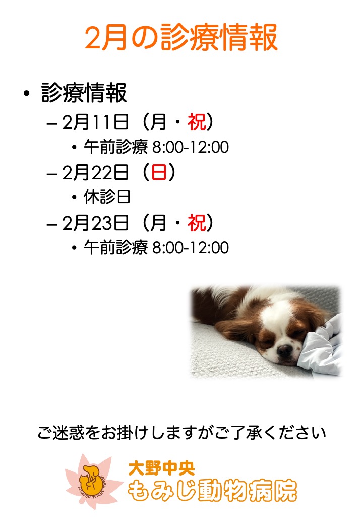 2月11日(月・祝)午前診療 8:00-12:00)